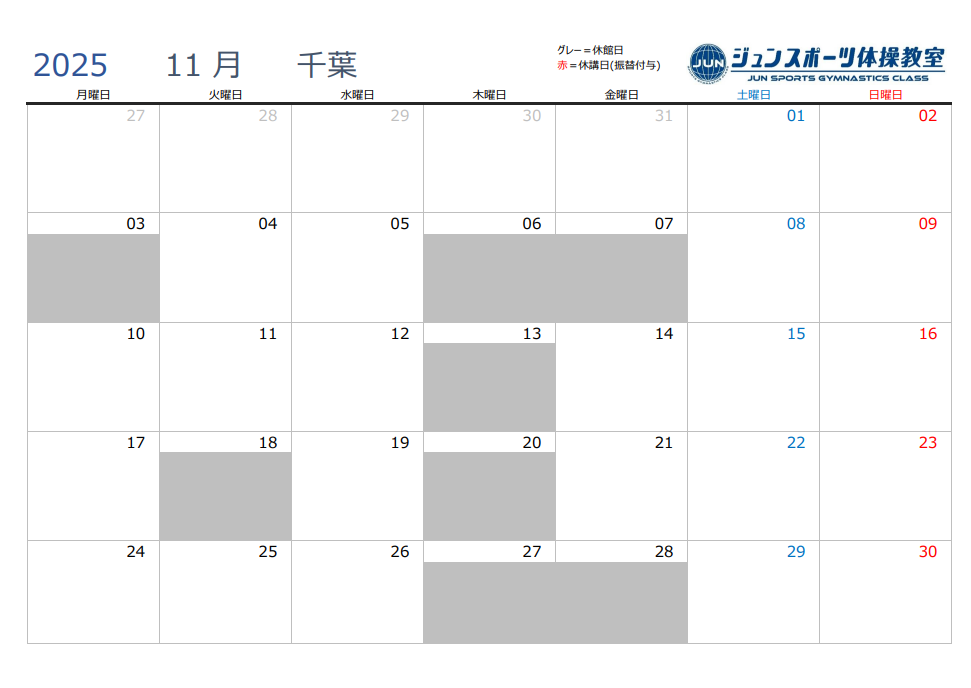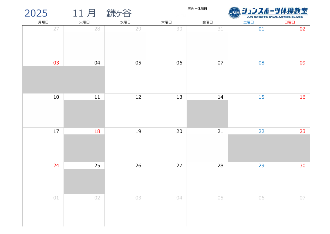 グレー色の日は休館日となるため、電話/メールでの対応は出来かねます。